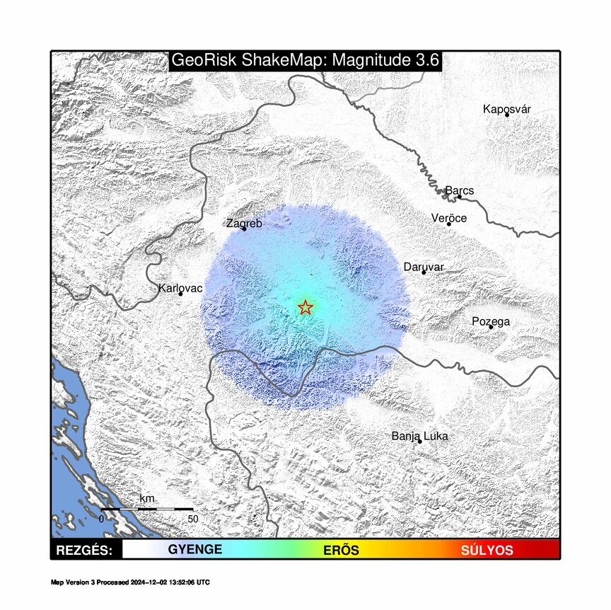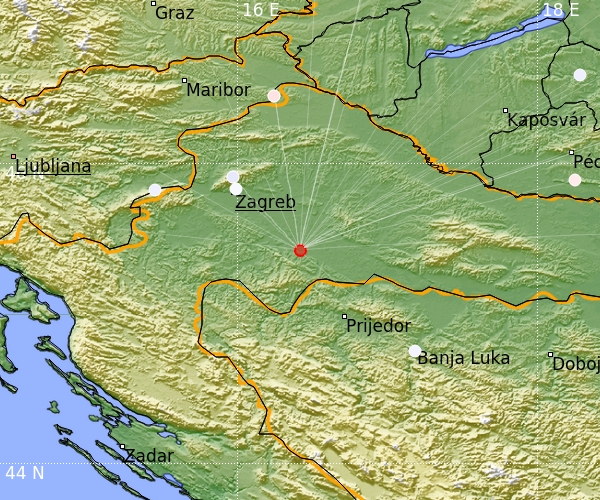 Földrengés Sisaktól (Horvátország) 6 km-re DK-re