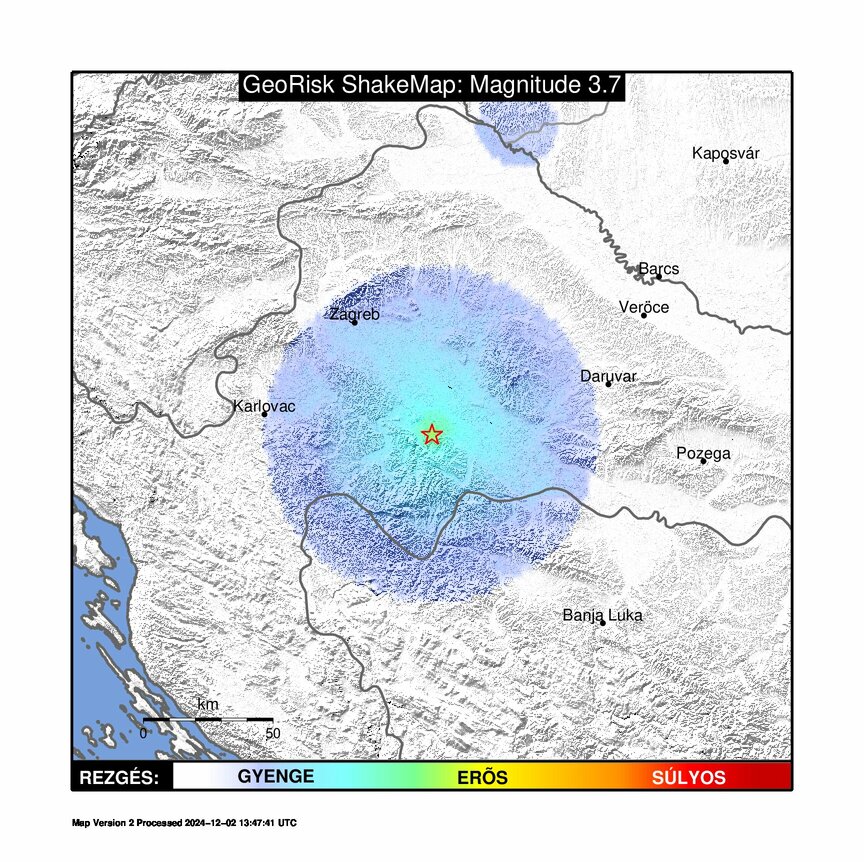 Földrengés Sisaktól (Horvátország) 5 km-re D-re
