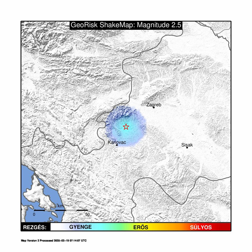 Földrengés Jastrebarskotól (Horvátország) 2 km-re D-re