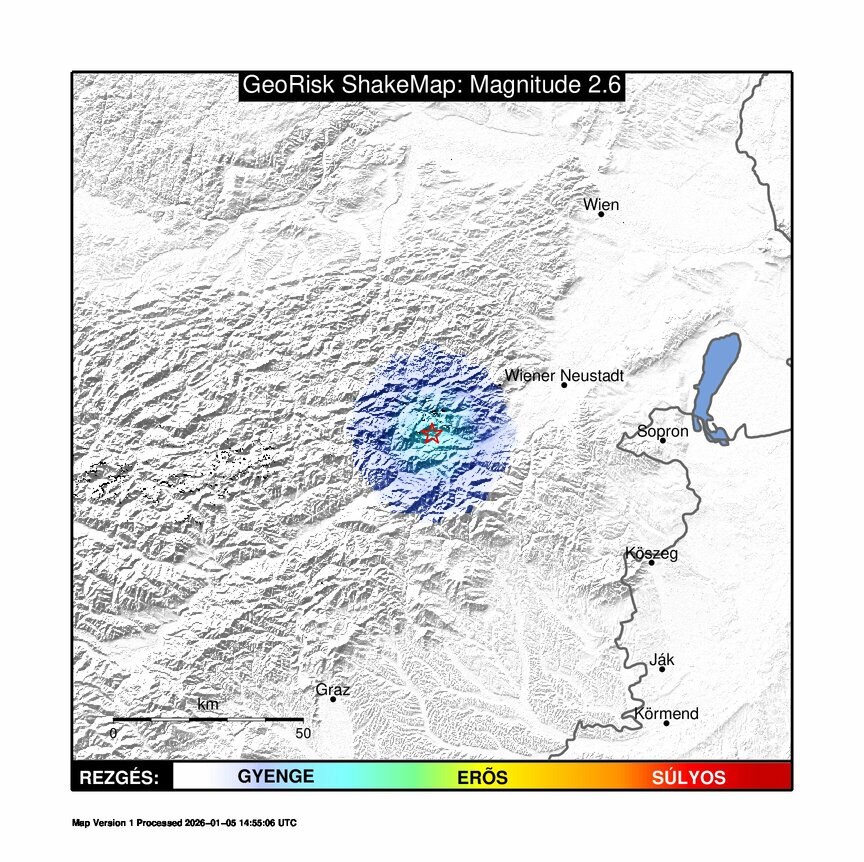 Földrengés Gloggnitztól (Ausztria) 11 km-re Ny-ra