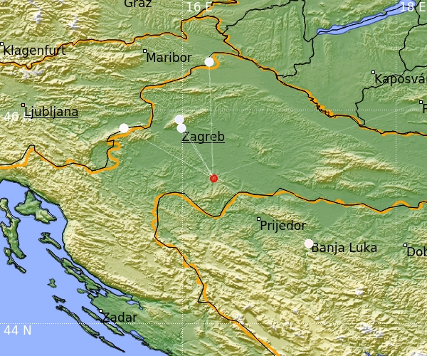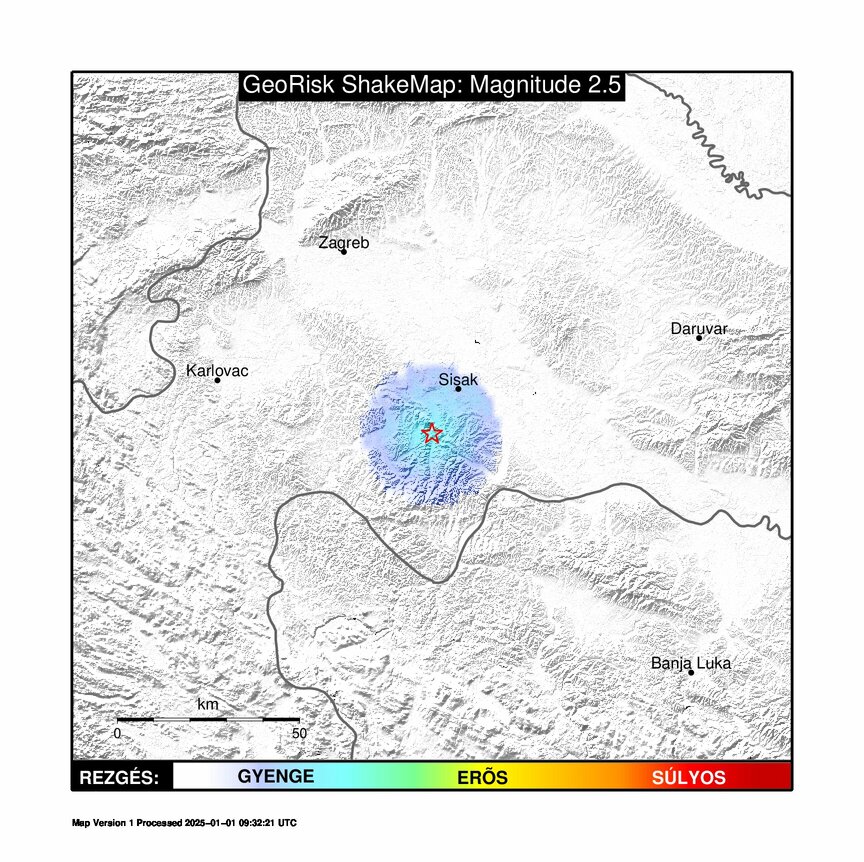 Földrengés Petrinjatól (Horvátország) 8 km-re D-re