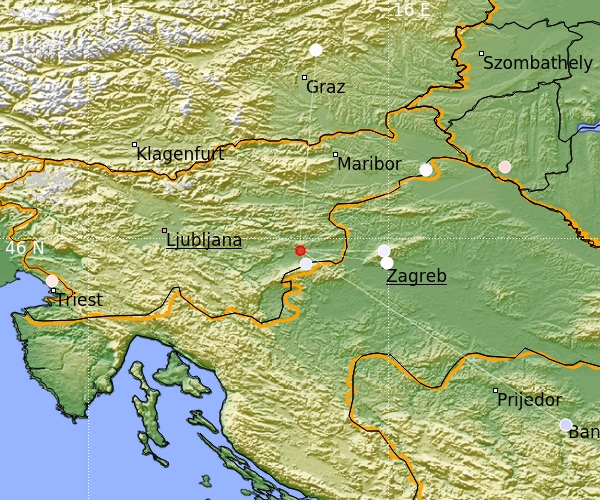 Földrengés Krškotól (Szlovénia) 7 km-re DNy-ra
