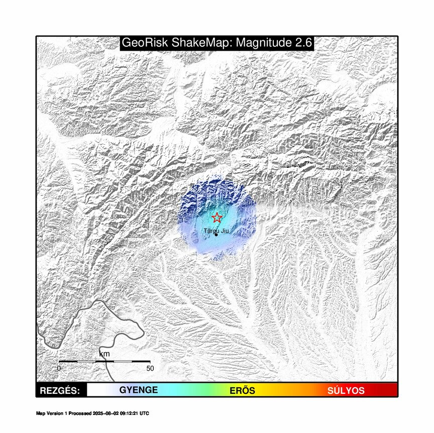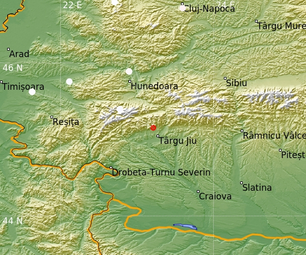 Földrengés Târgu Jiutól (Románia) 13 km-re É-ra