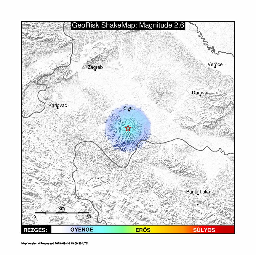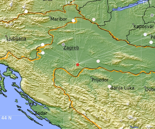 Földrengés Petrinjatól (Horvátország) 14 km-re DK-re