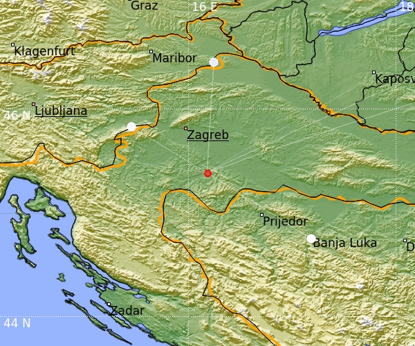 Földrengés Petrinjatól (Horvátország) 10 km-re DNy-ra