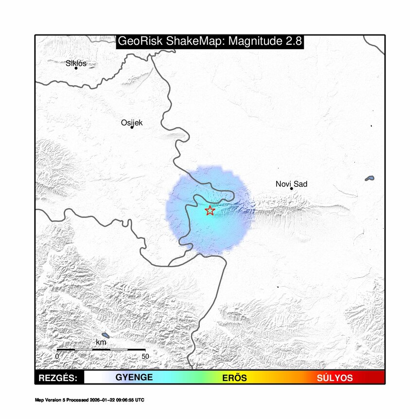 Földrengés Sidtól (Szerbia) 2 km-re K-re