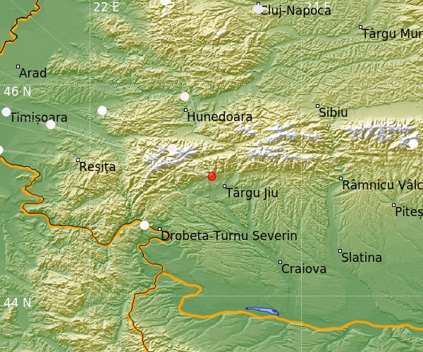 Földrengés Târgu Jiutól (Románia) 14 km-re ÉNy-ra