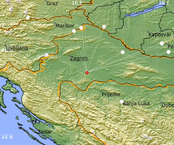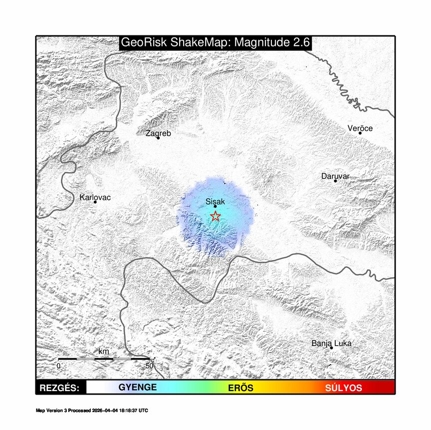 Földrengés Sisaktól (Horvátország) 5 km-re D-re